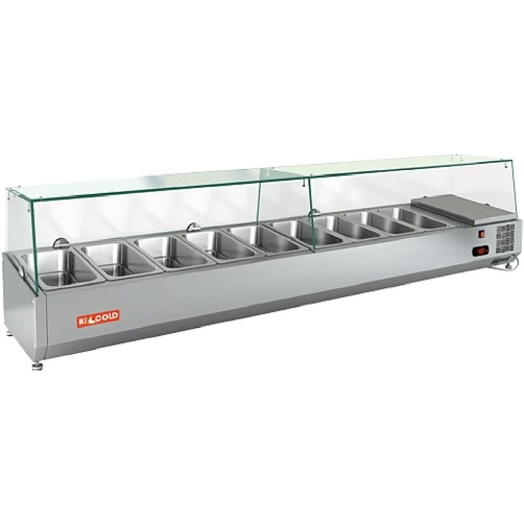 Каталог оборудования Холодильное оборудованиеВитрины для ингредиентовВитрина холодильная для ингредиентов HICOLD VRTG 1970 к PZ3 (1/4) Витрина холодильная для ингредиентов HICOLD VRTG 1970 к PZ3 (1/4) Код товара: 064-660 Поделиться: WhatsAppTelegram СравнитьДобавить в КПВ избранное 0 69 274 ₽ В корзину 0 шт Под заказСамовывоз сегодня бесплатно Взять в кредит Купить в лизинг Получить консультацию в WhatsApp Описание Характеристики Отзывы 0 Инструкции 3 Витрина холодильная для ингредиентов HICOLD VRTG 1970 к PZ3 (1/4) предназначена для охлаждения, кратковременного хранения и демонстрации ингредиентов, салатов и готовых блюд на предприятиях общественного питания и торговли. Устанавливается на холодильные столы для пиццы серии PZE3 благодаря встроенным креплениям в нижней части корпуса. На фото показана аналогичная модель с настольной установкой. Ключевые особенности: Корпус из нержавеющей стали — долговечность, простота ухода. Электронная панель управления — точная регулировка температуры. Исполнение G — стеклянная надстройка для удобного обзора продуктов. Высота витрины — 459 мм — компактное размещение на рабочей поверхности. Вместимость: 9 x GN1/4 — рациональная организация хранения (гастроёмкости приобретаются отдельно). Совместимые модели столов: PZE3-1111/SN, PZE3-1111/GN HICOLD VRTG 1970 к PZ3 (1/4) — это профессиональная настольная витрина, которая сочетает компактные размеры, современное управление и высокое качество охлаждения. Отличный выбор для пиццерий, ресторанов и кафе, где важны удобство доступа, скорость работы и эффектная подача продуктов.Изображение товара, представленного на фото, может отличаться от его фактического вида. Показать все Габаритные размеры1970×325×459 ммДиапазон рабочей температурыот +2 до +7 °CДлина1970 ммГлубина325 ммВысота459 ммТип крышкиСтеклянная Гастроемкостей9 штТип гастроемкостейGN1/4 Мощность150 ВтНапряжение220 ВТип охлажденияСтатическое Материал изготовленияНержавеющая сталь ХладагентR134 Мощность0,15 кВтВес нетто25 кгВес брутто71 кгТип оттайкиРучная Габариты в упаковке2100×540×580 ммБрендHicold Оставить отзыв Еще никто не оставил отзыв на этот товар Инструкция на HICOLD VRTG 1970 к PZ3.pdfСхема установки на стол.jpgДекларация о соответствии.pdf Похожие товары Перейти в каталог Под заказ Цена по запросу Витрина для ингредиентов Polair VT2-G (1/3) открытого типа В наличии 46 639 ₽ Витрина холодильная для ингредиентов TEFCOLD VK33-120 С этим товаром покупают В наличии 79 865 ₽ Стол морозильный Cooleq SS45BT В наличии 12 636 ₽ Льдогенератор HURAKAN HKN-IMF12M В наличии 63 864 ₽ Шкаф холодильный МХМ Капри 0,5М Ранее просмотрено АкцияВ наличии 61 989 ₽ Шкаф холодильный МХМ Капри 0,5СК Под заказ 199 800 ₽ Шкаф холодильный универсальный Carboma V1400 INOX Под заказ 176 571 ₽ Стол морозильный HiCold GN 13/BT P (без агрегата) Под заказ 90 152 ₽ Шкаф холодильный Ангара 650 К Под заказ Цена по запросу Горка пристенная витрина МХМ София 220/92 ВХСп-1,25 с ночными шторами В наличии 671 ₽ Гастроемкость HURAKAN GN 1/4-200 Под заказ 49 394 ₽ Ларь морозильный с прямым стеклом CRYSPI ЛВН 500 П (СF 500FQ) красный без корзин