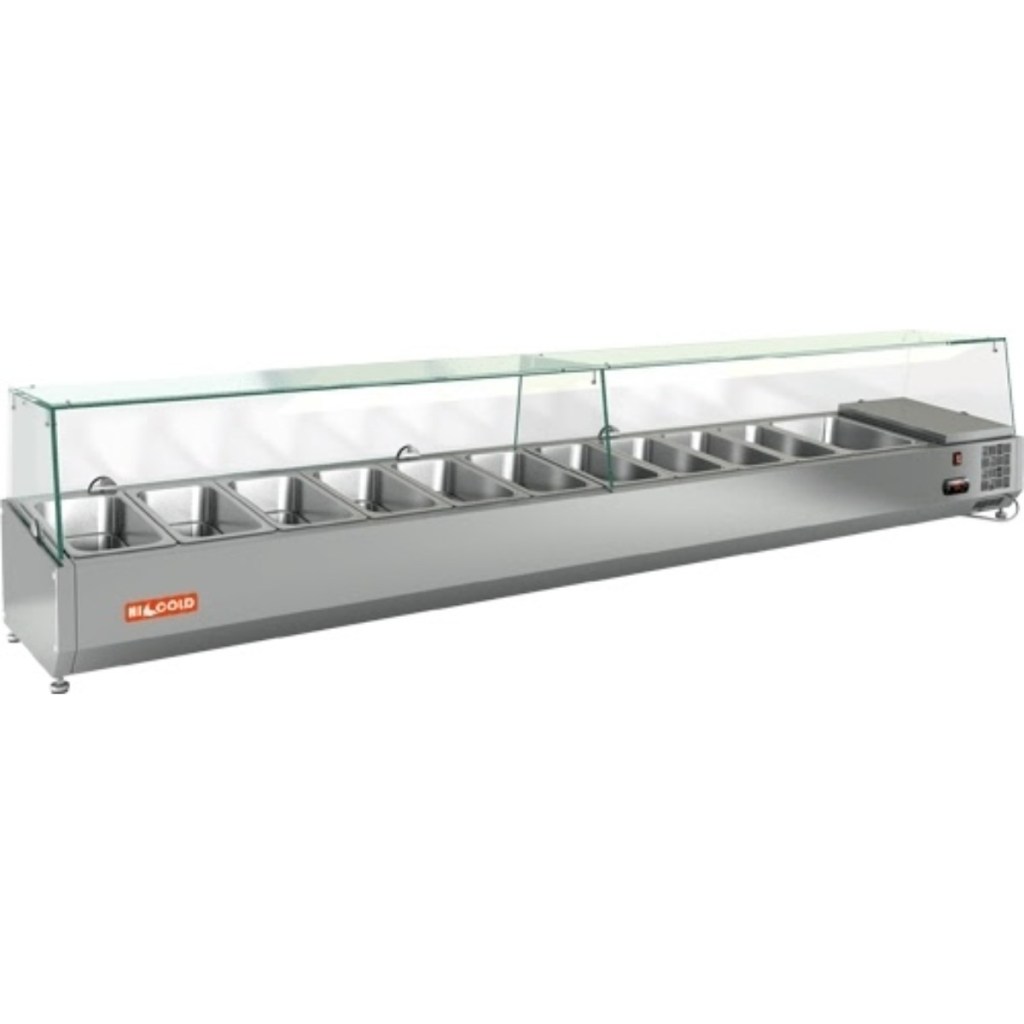 Каталог оборудования Холодильное оборудованиеВитрины для ингредиентовВитрина холодильная для ингредиентов HICOLD VRTG 2360 1/3 Витрина холодильная для ингредиентов HICOLD VRTG 2360 1/3 Код товара: 064-449 Поделиться: WhatsAppTelegram СравнитьДобавить в КПВ избранное 0 89 847 ₽ В корзину 0 шт Под заказСамовывоз сегодня бесплатно Взять в кредит Купить в лизинг Получить консультацию в WhatsApp Описание Характеристики Отзывы 0 Инструкции 2 Витрина холодильная для ингредиентов HICOLD VRTG 2360 1/3 предназначена для охлаждения, кратковременного хранения и наглядной демонстрации ингредиентов, салатов и готовых блюд на предприятиях общественного питания и в торговых точках. Гастроёмкости в комплект не входят, приобретаются отдельно. Основные особенности: Корпус выполнен из нержавеющей стали, обеспечивая долговечность и легкость в уходе; Электронная панель управления для точной настройки температуры; Модель с надстройкой из стекла (исполнение G) для удобной демонстрации продуктов; Высота витрины — 225 мм, высота стеклянной надстройки — 205 мм; Вместимость: 10 гастроёмкостей GN1/3 + 1 гастроёмкость GN1/2; Опорные ножки для устойчивой установки на столешнице. HICOLD VRTG 2360 1/3 — компактная и функциональная настольная витрина, идеально подходящая для демонстрации и кратковременного хранения продуктов на профессиональной кухне или в торговой зоне.Изображение товара, представленного на фото, может отличаться от его фактического вида. Показать все Габаритные размеры2360×385×459 ммДиапазон рабочей температурыот +2 до +7 °CДлина2360 ммГлубина385 ммВысота459 ммТип крышкиСтеклянная Гастроемкостей11 штТип гастроемкостейGN1/3, GN1/2 Мощность0,15 ВтНапряжение220 ВТип охлажденияСтатическое Материал изготовленияНержавеющая сталь ХладагентR134 Вес нетто67 кгВес брутто107 кгТип оттайкиРучная Габариты в упаковке2460×485×559 ммБрендHicold Оставить отзыв Еще никто не оставил отзыв на этот товар Инструкция на HICOLD VRTG 2360.pdfДекларация о соответствии.pdf Похожие товары Перейти в каталог Под заказ 50 751 ₽ Витрина холодильная для ингредиентов HICOLD VRTO 1425 1/3 Под заказ 57 000 ₽ Витрина для ингредиентов Carboma A30 SM 1,6 (7 GN1/4) Под заказ 89 578 ₽ Витрина холодильная для ингредиентов HICOLD VRTG 2360 к PZ3 (1/3) Под заказ 59 500 ₽ Витрина для ингредиентов Carboma A40 SM 1,2 VT2-G с крышкой Под заказ 59 175 ₽ Витрина холодильная для ингредиентов HICOLD VRX 1200 1/4 Под заказ 63 496 ₽ Витрина холодильная для ингредиентов HICOLD VRTG 1525 1/4 Под заказ 47 674 ₽ Витрина холодильная для ингредиентов HICOLD VRTU 1000 к PZE3 (1/3) Под заказ 60 526 ₽ Витрина холодильная для ингредиентов HICOLD VRTU 1970 к PZE3 (1/3) С этим товаром покупают Под заказ 61 704 ₽ Шкаф холодильный Pozis Свияга-538-10 Под заказ 133 376 ₽ Шкаф холодильный универсальный Север ШХ-1000 УН/РС В наличии 89 878 ₽ Шкаф холодильный низкотемпературный Arkto F0.5-S Под заказ 138 314 ₽ Моноблок холодильный низкотемпературный Север BGM 218 S В наличии 74 069 ₽ Сплит-система холодильная среднетемпературная Polair SM 111 M Под заказ 122 100 ₽ Стол холодильный среднетемпературный Abat СХС-70Н-01 без столешницы (дверь, ящик 1) Под заказ 311 842 ₽ Стол холодильный для пиццы HiCold PZ1-1122/GN (1/3H) Под заказ 154 432 ₽ Стол холодильный для салатов HiCold SLE2-12GN (1/6) с крышкой Ранее просмотрено НовинкаПод заказ 181 199 ₽ Стол морозильный низкотемпературный Polair TB3GN-220-G