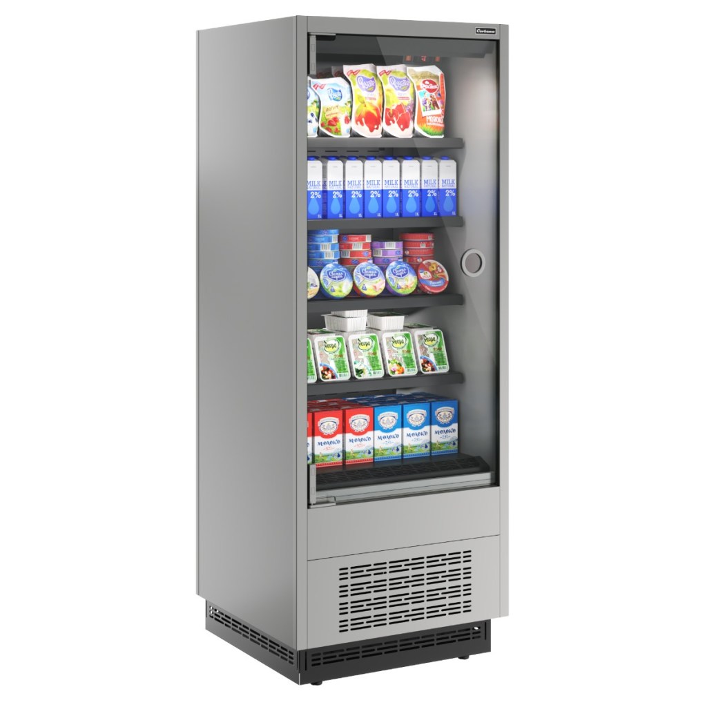 Горка холодильная Carboma FC20-07 VM 0,7-1 0030 LIGHT фронт Х0 (версия 2,0) (9006-9005) (бок металл с зеркалом)