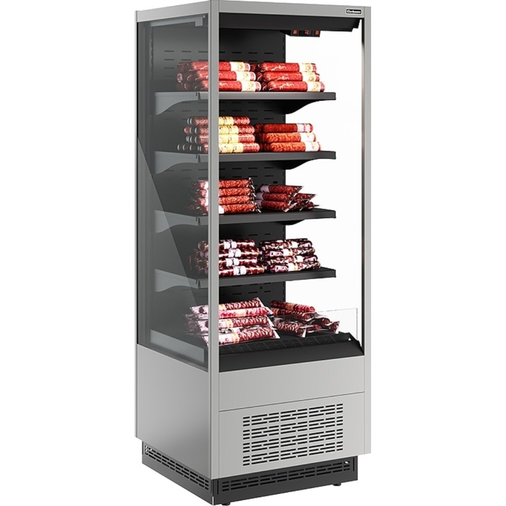 Carboma FC20-07 VM 0,7-2 (версия 2.0) (индивидуальное исполнение) — это функциональное и надёжное решение для предприятий общественного питания и торговли. Она обеспечивает стабильное динамическое охлаждение, экономичное энергопотребление и удобную демонстрацию продукции за счёт продуманной конструкции с четырьмя регулируемыми полками.