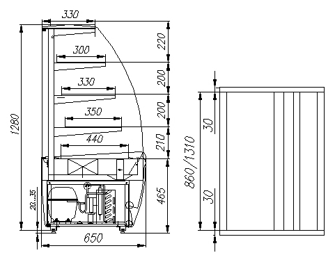 • Регулируемые по высоте ножки – позволяют установить витрину на неровной поверхности с выравниванием по уровню.