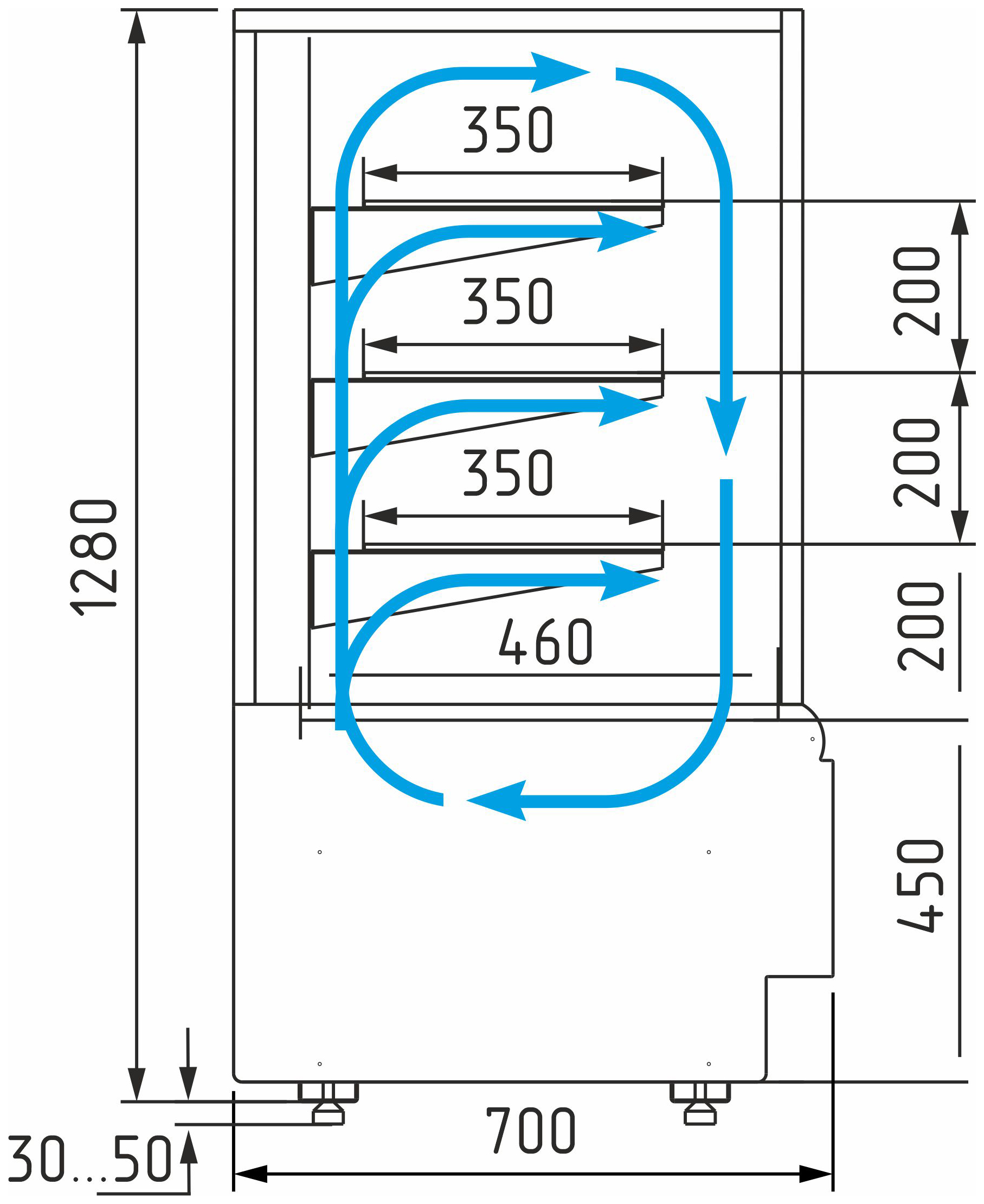 • Три охлаждаемые полки – позволяют удобно распределить продукцию по уровням.