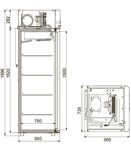 Каталог оборудования Холодильное оборудованиеШкафы холодильныеШкафы морозильные низкотемпературные до -18 °СШкаф морозильный Polair Polair CB107-Gm Alu Шкаф морозильный Polair Polair CB107-Gm Alu Код товара: 062-591 Поделиться: WhatsAppTelegram СравнитьДобавить в КПВ избранное 0 163 200 ₽ В корзину 0 шт Под заказСамовывоз сегодня бесплатно Взять в кредит Купить в лизинг Получить консультацию в WhatsApp Описание Характеристики Отзывы 0 Инструкции 4 Шкаф морозильный Polair Polair CB107-Gm Alu разработан для демонстрации и надежного хранения продуктов на предприятиях общественного питания и торговли. Цельнозаливной корпус выполнен из нержавеющей стали как снаружи, так и внутри (кроме задней стенки), что гарантирует высокую прочность и долговечность конструкции. Алюминиевые профили дверей и верхней панели подчеркивают современный и премиальный внешний вид шкафа. Оборудование рассчитано на работу при температуре окружающей среды до +40 °С и относительной влажности воздуха до 80%, что делает его надежным решением даже в сложных условиях эксплуатации. Основные особенности: Многофункциональная контрольная панель с жидкокристаллическим дисплеем Верхнее расположение агрегата, обеспечивающее удобный доступ к внутреннему объему Поддержка дистанционного мониторинга и записи данных в журнал контроллера (при использовании сетевой карты), а также передача данных через Bluetooth Клапан Шредера и компенсационный клапан с ПЭНом обогрева ПЭН обогрева трубки слива конденсата и ПЭН обогрева дверного проема для предотвращения образования наледи Распашные двери с полностью интегрированными ручками и эластичными магнитными уплотнителями, обеспечивающими максимальную герметизацию Микропереключатель, отключающий вентилятор и включающий подсветку при открытии дверей Встроенная внутренняя подсветка, улучшающая обзор содержимого Регулируемые по высоте ножки и педаль для удобного открывания двери Замок для обеспечения безопасности хранения 4 полки формата GN 2/1 (530×650 мм) с допустимой нагрузкой до 40 кг Толщина теплоизоляции корпуса — 61 мм Изображение товара, представленного на фото, может отличаться от его фактического вида. Показать все Габаритные размеры735×945×1996 ммДиапазон рабочей температурыдо -18 °CДлина735 ммГлубина450 ммВысота1996 ммОбъём700 лМатериал корпусаНержавеющая сталь Тип охлажденияДинамическое Тип управленияМеханическое Расход электроэнергии в сутки12 кВтКоличество полок2 штКоличество дверей1 штЗамокЕсть Тип двериМеталлическая Способ открыванияРаздвижные (купе) Напряжение220 ВХладагентR290 Расположение агрегатаНижнее Габариты в упаковке850×988×2160 ммВес нетто128 кгВес брутто152 кгБрендPolairВсе шкафы морозильные низкотемпературные до -18 °С POLAIRВсе шкафы морозильные низкотемпературные до -18 °С 4 уровня Оставить отзыв Еще никто не оставил отзыв на этот товар Схема POLAIR CB107-Gm Alu.jpgИнструкция на POLAIR CB107-Gm Alu.pdfДекларация о соответствии.pdfСертификат соответствия.pdf Похожие товары Перейти в каталог Под заказ 121 005 ₽ Шкаф морозильный Abat ШХн-0,5 Под заказ 89 817 ₽ Шкаф морозильный со стеклом TEFCOLD UF100G Под заказ 159 662 ₽ Шкаф морозильный Kayman К1500-М Под заказ 201 448 ₽ Шкаф морозильный Abat ШХн-1,4-02 В наличии 89 675 ₽ Шкаф морозильный для икры и пресервов Polair DP105-S Под заказ 149 670 ₽ Шкаф морозильный Abat ШХн-0,7-01 нерж. Под заказ 139 830 ₽ Шкаф морозильный Ангара 1000 РБК Под заказ 223 110 ₽ Шкаф морозильный Полюс Carboma F1400 INOX С э