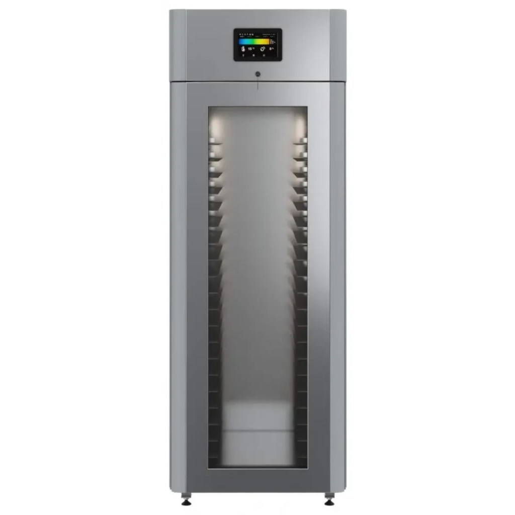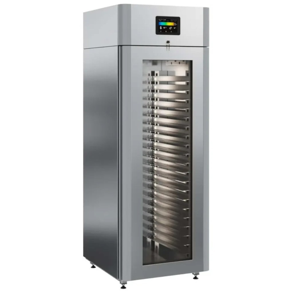 Каталог оборудования Холодильное оборудованиеШкафы холодильныеСпециализированные холодильные шкафыШкаф холодильный для хлебопекарных производств Polair CS107-Bakery Br со стеклом (Тип 1) Шкаф холодильный для хлебопекарных производств Polair CS107-Bakery Br со стеклом (Тип 1) Код товара: 062-622 Поделиться: WhatsAppTelegram СравнитьДобавить в КПВ избранное 0 414 545 ₽ В корзину 0 шт В наличии на 1 складеДоступно для заказа 3 шт.Наличие на складахВолжскг.Волжск, Йошкар-Олинское шоссе, д.20В наличии 3 шт.Самовывоз сегодня бесплатно Расчет стоимости доставкиОткудаВолжскКудаМоскваСанкт-ПетербургАстраханьБарнаулБелгородБрянскВладивостокВолгоградВоронежЕкатеринбургИвановоИжевскИркутскКазаньКалининградКемеровоКировКраснодарКрасноярскКурскЛипецкМагнитогорскМахачкалаНабережные ЧелныНижний НовгородНижний ТагилНовокузнецкНовосибирскОмскОренбургПензаПермьПятигорскРостов-на-ДонуРязаньСамараСаратовСимферопольСтавропольТверьТольяттиТомскТулаТюменьУлан-УдэУльяновскУфаХабаровскЧебоксарыЧелябинскЯрославльРассчитатьРасчет стоимости доставки указан приблизительный, более точный расчет Вам может осуществить сотрудник транспортной компании. Взять в кредит Купить в лизинг Получить консультацию в WhatsApp Описание Характеристики Отзывы 0 Инструкции 5 Шкаф холодильный для хлебопекарных производств Polair CS107-Bakery Br со стеклом (Тип 1) предназначен для создания оптимальных условий хранения и расстойки заготовок из теста на предприятиях общественного питания и торговли. Цельнозаливной корпус выполнен из нержавеющей стали, дверь — стеклопакет. Оборудование стабильно работает при температуре окружающей среды до +40 °C. В комплект входят 20 пар направляющих размером 400×600 мм. Особенности: Широкий функционал: охлаждение, замедление ферментации, хранение, регенерация, брожение и расстойка Динамическое охлаждение с мягким обдувом без заветривания и автоматическая оттайка с системой испарения конденсата Панель управления с 5" дисплеем: контроль температуры, влажности (регулируется от 60 до 95 %), скорости вентилятора и времени, а также возможность создания и сохранения программ Встроенный ультразвуковой увлажнитель (необходима система водоочистки и канализация) Эргономичная конструкция: верхнее расположение агрегата, распашная дверь со стеклопакетом, механизм самозакрывания, педаль для открытия, съёмные направляющие и легко заменяемый уплотнитель с магнитной вставкой Дополнительная защита: пластиковый бордюр по периметру камеры для предотвращения повреждений от тележек Простота ухода: штампованное углубление в дне корпуса для сбора загрязнений Экологичный хладагент R290 и энергоэффективность: потребляемая мощность — 0,55 кВт (охлаждение), 0,9 кВт (нагрев) Толщина стенки корпуса — 43 мм Polair CS107-Bakery Br со стеклом (Тип 1) — надёжный и многофункциональный шкаф, который обеспечивает полное управление процессами брожения и расстойки теста. Современная система охлаждения и увлажнения, продуманная конструкция и удобное управление делают его оптимальным решением для пекарен и кондитерских, стремящихся к стабильному качеству и высокой производительности.Изображение товара, представленного на фото, может отличаться от его фактического вида. Показать все Габаритные размеры697×1005×1960 ммДиапазон рабочей температурыот -10 до +40 °CДлина697 ммШирина1005 ммВысота1960 ммОбъё