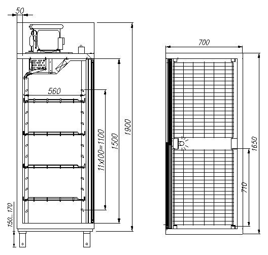 Шкаф холодильный Carboma R1400К INOX (купе) — профессиональное оборудование для предприятий общественного питания и торговли, предназначенное для охлаждения и кратковременного хранения скоропортящихся продуктов.