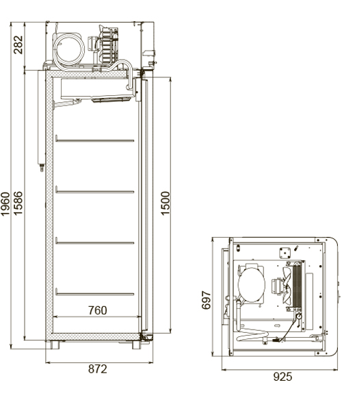 Каталог оборудования Холодильное оборудованиеШкафы холодильныеШкафы холодильные универсальные от -5 до +5 °СШкаф холодильный универсальный Polair CV107-Sm Alu Шкаф холодильный универсальный Polair CV107-Sm Alu Код товара: 062-611 Поделиться: WhatsAppTelegram СравнитьДобавить в КПВ избранное 0 129 370 ₽ В корзину 0 шт Под заказСамовывоз сегодня бесплатно Взять в кредит Купить в лизинг Получить консультацию в WhatsApp Описание Характеристики Отзывы 0 Инструкции 4 Шкаф холодильный универсальный Polair CV107-Sm Alu предназначен для демонстрации и надежного хранения продуктов на предприятиях общественного питания и торговли. Цельнозаливной корпус выполнен из стали с полимерным покрытием и оснащен алюминиевыми профилями, что обеспечивает высокую прочность конструкции и долговечность, а также подчеркивает современный премиальный дизайн. Шкаф работает при температуре окружающей среды до 40 °С и влажности воздуха до 80%. Особенности модели: Контрольная панель с быстрым доступом к настройкам, удобным возвратом в предыдущее меню и возможностью полного отключения без отдельной кнопки. Жидкокристаллический дисплей для наглядного отображения параметров. Клапан Шредера для обслуживания холодильной системы. Компенсационный клапан с ПЭНом обогрева, ПЭНы обогрева трубки слива конденсата и дверного проема — предотвращают образование льда и обеспечивают надежную работу. Распашной тип двери с возможностью изменения стороны открывания, что делает установку более гибкой. Полностью интегрированные ручки, удобные и стильные. Эластичные уплотнители с магнитными вставками для максимальной герметизации. Внутренняя подсветка вынесена на нижнюю часть фронтальной панели. Микропереключатель для автоматического отключения вентилятора и включения подсветки при открытии дверей. Регулируемые по высоте ножки для устойчивости на любом полу. Педаль для удобного открывания без рук. Замок для защиты содержимого. Высокая допустимая нагрузка на полку — до 40 кг. Размер полки: GN 2/1 (530×650 мм). Толщина стенки корпуса — 43 мм, что обеспечивает отличную теплоизоляцию. Polair CV107-Sm Alu — это функциональный и надежный холодильный шкаф с современным дизайном, который обеспечивает максимальную сохранность и удобный доступ к продуктам. Отлично подходит для ресторанов, кафе и магазинов, где важны надежность, стиль и энергоэффективность.Изображение товара, представленного на фото, может отличаться от его фактического вида. Показать все Габаритные размеры697×925×1960 ммДиапазон рабочей температурыот -5 до +5 °CДлина697 ммГлубина925 ммВысота1960 ммОбъём700 лРазмер полки530×650 ммКоличество полок4 штКоличество дверей1 штТип оттайкиАвтоматическая Тип охлажденияДинамическое Тип управленияЭлектронное Материал корпусаНержавеющая сталь Тип двериМеталлическая ЗамокЕсть Способ открыванияРаспашные ХладагентR290 Холодильный агрегатВстроенный Расположение агрегатаВерхнее Потребление электроэнергии в сутки4,5 кВтПотребляемая мощность0,4 кВтНапряжение220 ВГабариты в упаковке800×1000×2150 ммВес нетто113 кгВес брутто138 кгБрендPolairВсе шкафы холодильные универсальные от -5 до +5 °С Из нержавейки Оставить отзыв Еще никто не оставил отзыв на этот товар Схема POLAIR CV107-Sm.jpgИнструкция на POLAIR CV107-Sm.pdfДекларация о соответствии.pdfСертификат соответствия.pdf Похожие товары Перейти в каталог Под заказ 78 694 ₽ Шкаф холодильный универсальный МХМ 