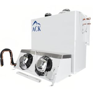 Сплит-система холодильная низкотемпературная АСК-холод СН-21 предназначена для создания и поддержания стабильного температурного режима в холодильных камерах предприятий пищевой промышленности, торговли и общественного питания. Система состоит из компрессорно-конденсаторного блока и воздухоохладителя, соединённых теплоизолированными медными трубками для циркуляции хладагента и отвода конденсата, а также кабелем управления и электропитания.