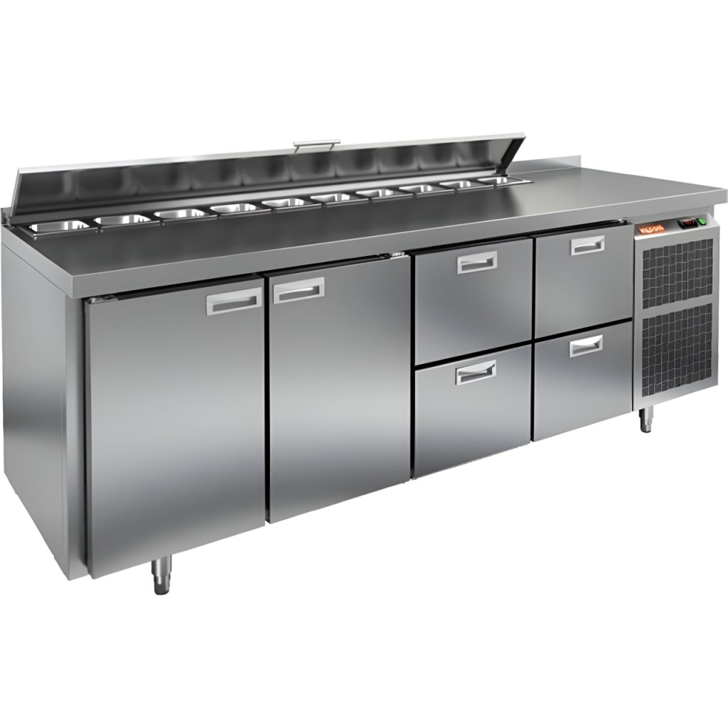 Каталог оборудования Холодильное оборудованиеСтолы охлаждаемыеСтолы холодильные для салатовСтол холодильный для салатов HiCold SL1-332GN (1/3) с крышкой Стол холодильный для салатов HiCold SL1-332GN (1/3) с крышкой Код товара: 064-851 Поделиться: WhatsAppTelegram СравнитьДобавить в КПВ избранное 0 290 692 ₽ В корзину 0 шт Под заказСамовывоз сегодня бесплатно Взять в кредит Купить в лизинг Получить консультацию в WhatsApp Описание Характеристики Отзывы 0 Инструкции 1 Стол холодильный для салатов HiCold SL1-332GN (1/3) предназначен для использования на предприятиях общественного питания и торговли. Он объединяет рабочую поверхность и охлаждаемый отсек, что делает его удобным решением для хранения, охлаждения и подготовки ингредиентов при приготовлении салатов, пиццы и других блюд. Такая конструкция позволяет повару работать быстрее и эффективнее, так как все необходимые продукты находятся под рукой. Корпус и столешница выполнены из прочной нержавеющей стали, устойчивой к коррозии и легко поддающейся санитарной обработке. Металлическая крышка защищает продукты от загрязнений и сохраняет их свежесть. Особенности модели: Электронная панель управления — точная настройка температурного режима. 8 выдвижных ящика — быстрое размещение и замена продуктов. Вместимость салат-бара — до 8 гастроемкостей глубиной до 100 мм. Автоматические доводчики — комфорт при загрузке/выгрузке. Легкозаменяемые магнитные уплотнители — надежная герметичность. Открытая агрегатная часть — быстрый доступ для обслуживания. Регулируемые по высоте ножки — устойчивость даже на неровном полу. Толщина столешницы, борта и теплоизоляции — 50 мм, что обеспечивает прочность и энергоэффективность конструкции. HiCold SL1-332GN (1/3) — практичное и удобное решение для профессиональной кухни, обеспечивающее удобную подготовку и хранение ингредиентов.Изображение товара, представленного на фото, может отличаться от его фактического вида. Показать все Габаритные размеры1835×700×850 ммДиапазон рабочей температурыот +2 до +10 °CРасположение агрегатаБоковое Материал столешницыНержавеющая Тип столаС дверьми и ящиками Тип двериГлухая Объём505 лКоличество дверей2 штТип гастроемкостейGN 1/3 Количество ящиков6 штРазмер полки530×325 ммНапряжение220 ВМощность0,46 кВтТип охлажденияДинамическое Тип оттайкиАвтоматическая СтолешницаС бортом Габариты в упаковке2000×850×1000 ммВес нетто120 кгВес брутто140 кгБрендHicold Оставить отзыв Еще никто не оставил отзыв на этот товар Декларация о соответствии.pdf Ранее просмотрено Под заказ 151 462 ₽ Стол холодильный для салатов HiCold SLS2-11GN (1/6) с крышкой Под заказ 164 962 ₽ Стол холодильный для салатов HiCold SL2-11SN (1/6) М с крышкой Под заказ 204 922 ₽ Стол холодильный для салатов HiCold SL1-22GN (1/3) с крышкой Под заказ 154 791 ₽ Стол холодильный для салатов HiCold SLE1-12GN (1/3) О с крышкой Под заказ 172 162 ₽ Стол холодильный для салатов HiCold SLE1-11111GN (1/3) О с крышкой Под заказ 320 122 ₽ Стол холодильный для салатов HiCold SL2-2222GN (1/6) с крышкой Под заказ 126 981 ₽ Стол холодильный для салатов HiCold SLE2-11SN (1/6) З с крышкой