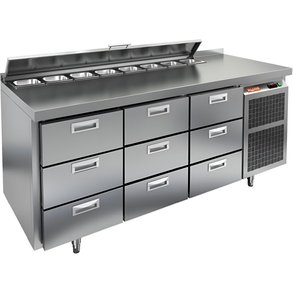 Каталог оборудования Холодильное оборудованиеСтолы охлаждаемыеСтолы холодильные для салатовСтол холодильный для салатов HiCold SL1-333GN (1/3) с крышкой Стол холодильный для салатов HiCold SL1-333GN (1/3) с крышкой Код товара: 064-847 Поделиться: WhatsAppTelegram СравнитьДобавить в КПВ избранное 0 305 992 ₽ В корзину 0 шт Под заказСамовывоз сегодня бесплатно Взять в кредит Купить в лизинг Получить консультацию в WhatsApp Описание Характеристики Отзывы 0 Стол холодильный для салатов HiCold SL1-333GN (1/3) предназначен для использования на предприятиях общественного питания и торговли. Он объединяет рабочую поверхность и охлаждаемый отсек, что делает его удобным решением для хранения, охлаждения и подготовки ингредиентов при приготовлении салатов, пиццы и других блюд. Такая конструкция позволяет повару работать быстрее и эффективнее, так как все необходимые продукты находятся под рукой. Корпус и столешница выполнены из прочной нержавеющей стали, устойчивой к коррозии и легко поддающейся санитарной обработке.Металлическая крышка защищает продукты от загрязнений и сохраняет их свежесть. Особенности модели: Электронная панель управления — точная настройка температурного режима. 9 выдвижных ящика — быстрое размещение и замена продуктов. Вместимость салат-бара — до 8 гастроемкостей глубиной до 100 мм. Автоматические доводчики — комфорт при загрузке/выгрузке. Легкозаменяемые магнитные уплотнители — надежная герметичность. Открытая агрегатная часть — быстрый доступ для обслуживания. Регулируемые по высоте ножки — устойчивость даже на неровном полу. Толщина столешницы, борта и теплоизоляции — 50 мм, что обеспечивает прочность и энергоэффективность конструкции. HiCold SL1-333GN (1/3) — практичное и удобное решение для профессиональной кухни, обеспечивающее удобную подготовку и хранение ингредиентов. Изображение товара, представленного на фото, может отличаться от его фактического вида. Показать все Габаритные размеры1835×700×850 ммДиапазон рабочей температурыот +2 до +10 °CРасположение агрегатаБоковое Материал столешницыНержавеющая Тип столаС ящиками Объём505 лТип гастроемкостейGN 1/3 Количество ящиков9 штНапряжение220 ВМощность0,46 кВтТип охлажденияДинамическое Тип оттайкиАвтоматическая СтолешницаС бортом Габариты в упаковке2000×850×1000 ммВес нетто130 кгВес брутто185 кгБрендHicold Оставить отзыв Еще никто не оставил отзыв на этот товар Ранее просмотрено Под заказ 201 682 ₽ Стол холодильный для салатов HiCold SL2-22GN (1/6) О без крышки Под заказ 170 902 ₽ Стол холодильный для салатов HiCold SLE3-111GN полипропилен, без крышки Под заказ 139 671 ₽ Стол холодильный для салатов HiCold SL1-11SN (1/3) О без крышки Под заказ 166 222 ₽ Стол холодильный для салатов HiCold SL1-11GN (1/3) О М с крышкой Под заказ 469 906 ₽ Агрегат компрессорный-конденсаторный МХМ БКК ZB-58 Под заказ 127 791 ₽ Стол холодильный для салатов HiCold SLE1-11GN (1/3) О З с крышкой Под заказ 255 412 ₽ Стол холодильный для салатов HiCold SL1-222GN (1/3) О без крышки