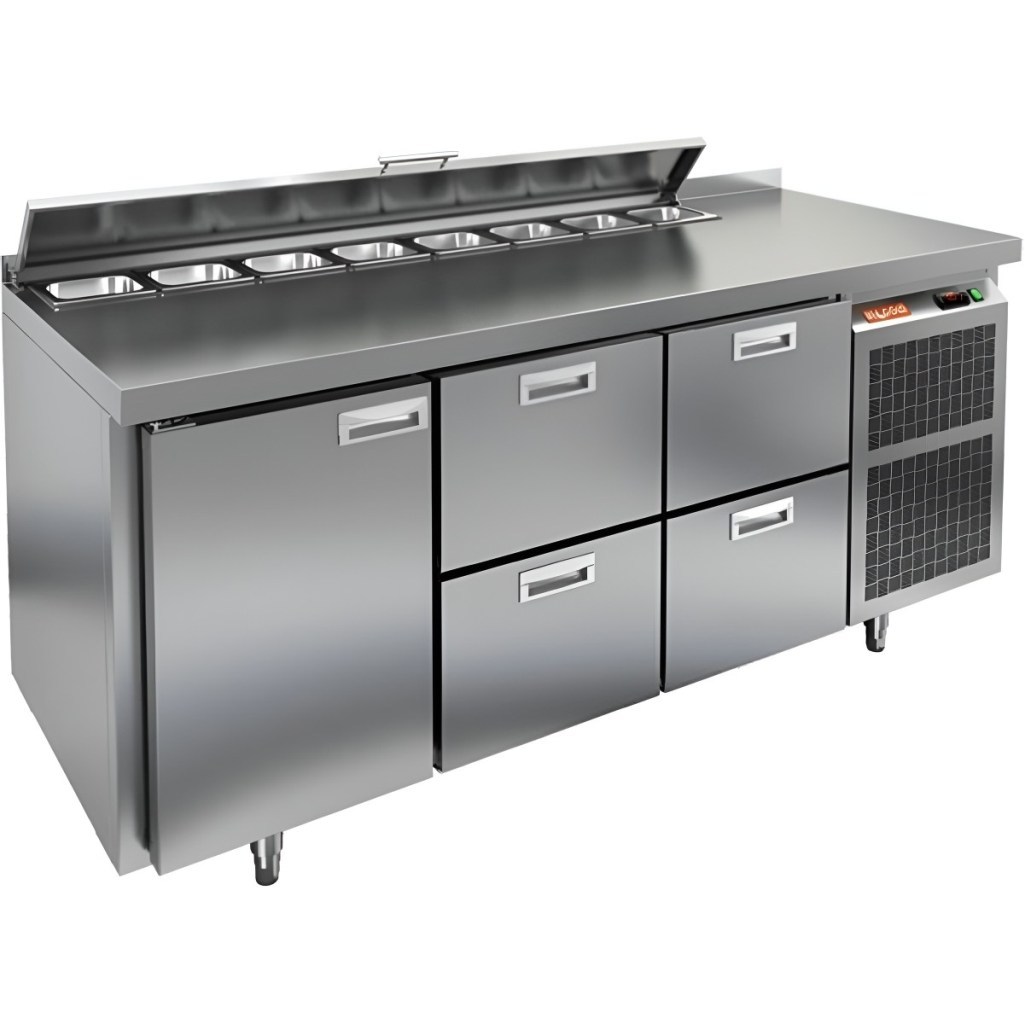 Стол холодильный для салатов HiCold SL2-122SN (1/6) с крышкой предназначен для использования на предприятиях общественного питания и торговли. Он подходит для хранения, обработки и кратковременного охлаждения ингредиентов, применяемых при приготовлении пиццы, салатов, закусок и других блюд.