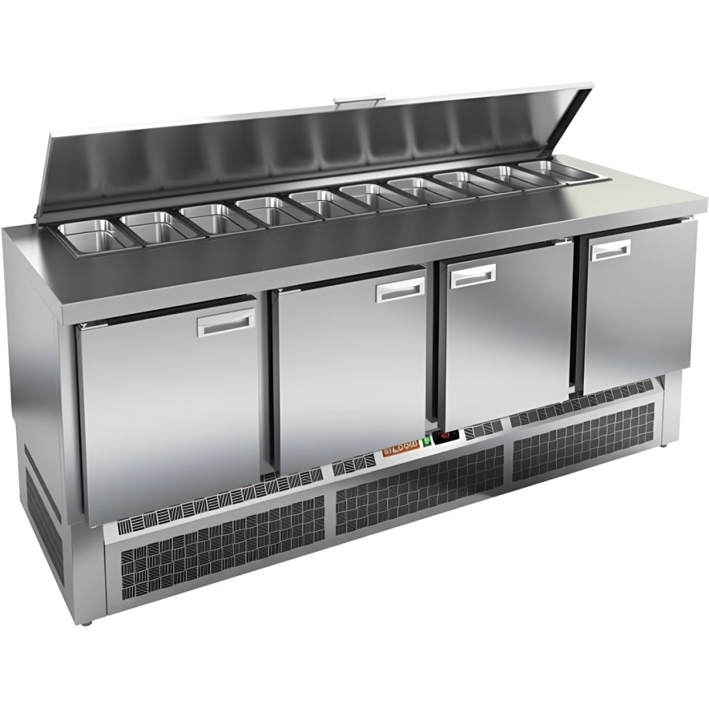 Каталог оборудования Холодильное оборудованиеСтолы охлаждаемыеСтолы холодильные для салатовСтол холодильный для салатов HiCold SLE1-11111GN (1/3) О с крышкой Стол холодильный для салатов HiCold SLE1-11111GN (1/3) О с крышкой Код товара: 064-545 Поделиться: WhatsAppTelegram СравнитьДобавить в КПВ избранное 0 172 162 ₽ В корзину 0 шт Под заказСамовывоз сегодня бесплатно Взять в кредит Купить в лизинг Получить консультацию в WhatsApp Описание Характеристики Отзывы 0 Инструкции 2 Стол холодильный для салатов HiCold SLE1-1111GN (1/3) О с крышкой предназначен для предприятий общественного питания и торговли. Он позволяет хранить и обрабатывать ингредиенты для пиццы, салатов и других блюд, а также охлаждать и кратковременно хранить скоропортящиеся продукты и напитки. Модель совмещает рабочую поверхность и охлаждаемый объем, что обеспечивает удобство работы повара: все необходимые компоненты всегда под рукой. Корпус и столешница выполнены из нержавеющей стали, что гарантирует долговечность и простоту ухода. Особенности: Динамическая система охлаждения — равномерное распределение температуры по всему объему. Автоматическая оттайка — упрощает уход за оборудованием. Электронная панель управления — удобная настройка температуры и режимов работы. 4 вместительные внутренние полки формата GN 1/1 — оптимальное хранение ингредиентов. Автоматические доводчики дверей с фиксатором открытого положения — комфорт и безопасность работы. Легкозаменяемые магнитные уплотнители — простота обслуживания. Открытая агрегатная часть — облегчает доступ для обслуживания. Регулируемые по высоте ножки — адаптация к рабочей поверхности. Размер полки: 530×325 мм (GN 1/1) Максимальная глубина гастроемкостей: 100 мм Столешница без борта и с крышкой: толщина столешницы и теплоизоляции — 50 мм, высота борта — 50 мм HiCold SLE1-1111GN (1/3) О с крышкой — надежный и удобный стол для профессиональной кухни. Он обеспечивает эффективное охлаждение и хранение ингредиентов, а комбинированная рабочая поверхность с холодильным объемом упрощает работу повара, делая процесс приготовления быстрее и удобнее.Изображение товара, представленного на фото, может отличаться от его фактического вида. Показать все Габаритные размеры1970×700×800 ммДиапазон рабочей температурыот +2 до +10 °CРасположение агрегатаНижнее Материал столешницыНержавеющая Тип столаС дверьми Тип двериГлухая Объём505 лКоличество дверей4 штТип гастроемкостейGN 1/3 Размер полки530×325 ммНапряжение220 ВМощность0,46 кВтТип охлажденияДинамический Тип оттайкиАвтоматическая СтолешницаС бортом Вес нетто135 кгВес брутто195 кгБрендHicold Оставить отзыв Еще никто не оставил отзыв на этот товар Паспорт на HICOLD SLE1-1111GN (1/3) О.pdfДекларация о соответствии.pdf Ранее просмотрено Под заказ 320 122 ₽ Стол холодильный для салатов HiCold SL2-2222GN (1/6) с крышкой Под заказ 126 981 ₽ Стол холодильный для салатов HiCold SLE2-11SN (1/6) З с крышкой Под заказ 268 381 ₽ Компрессорно-конденсаторный блок Север ACM-ZB21 В наличии 120 862 ₽ Стол холодильный для салатов HiCold SLE1-11GN (1/3) О без крышки Под заказ 152 452 ₽ Стол холодильный для салатов HiCold SLE2-111GN (1/6) О З с крышкой