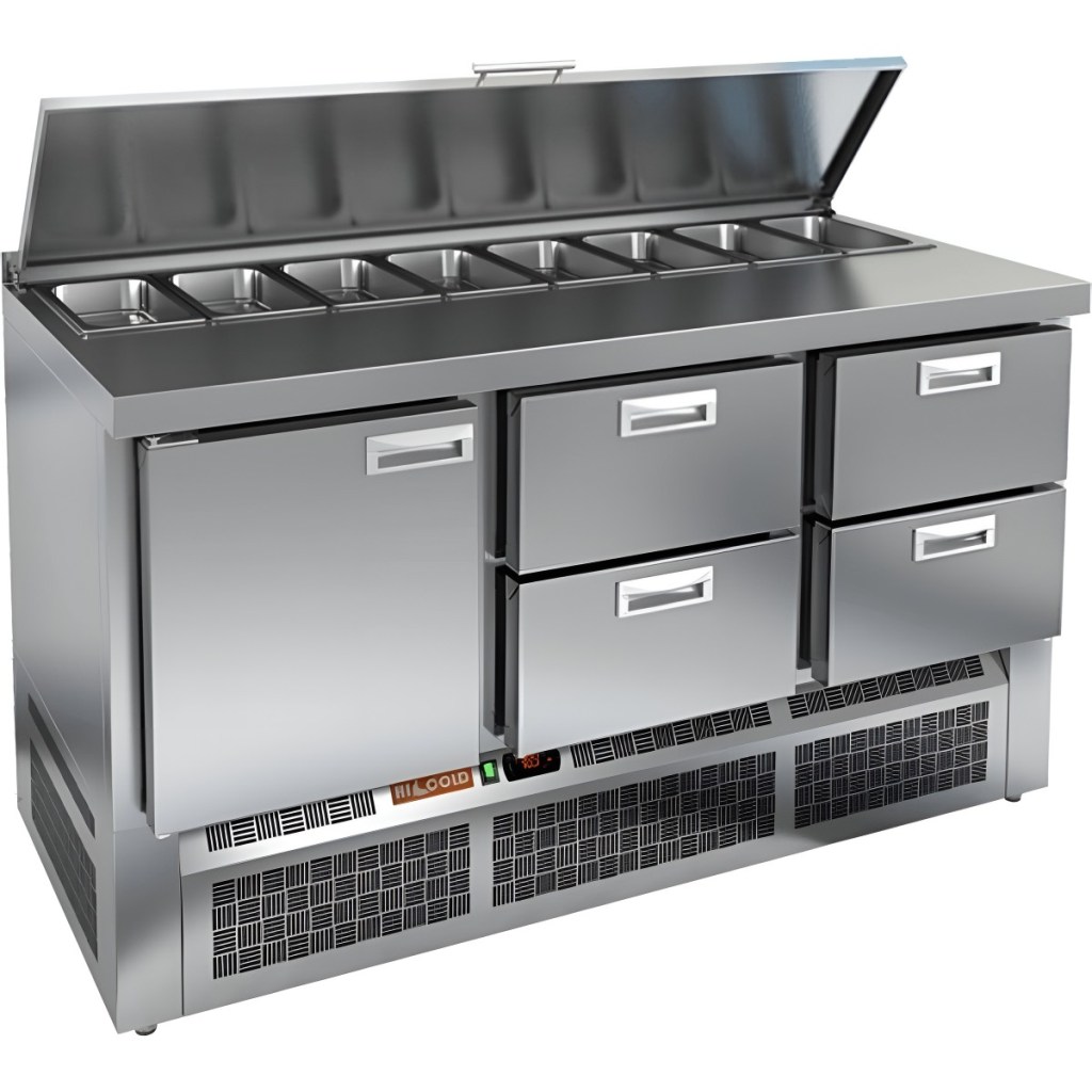 Модель сочетает в себе прочную рабочую поверхность и охлаждаемый внутренний объем, что упрощает процесс приготовления: все необходимые ингредиенты всегда под рукой. Корпус и столешница изготовлены из нержавеющей стали, устойчивой к воздействию влаги, механическим повреждениям и легко поддающейся очистке. Металлическая крышка защищает продукты от загрязнений и сохраняет их свежесть.