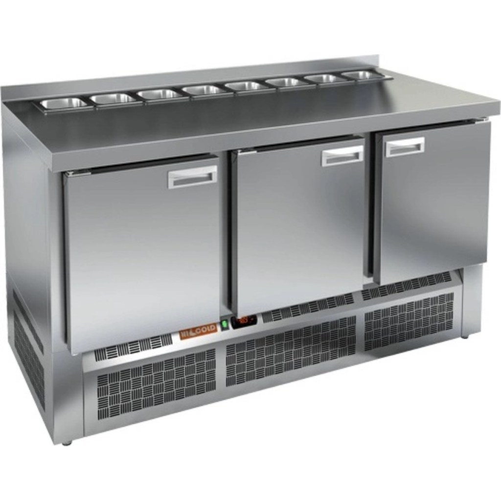 Каталог оборудования Холодильное оборудованиеСтолы охлаждаемыеСтолы холодильные для салатовСтол холодильный для салатов HiCold SLE2-111SN (1/6) без крышки Стол холодильный для салатов HiCold SLE2-111SN (1/6) без крышки Код товара: 064-871 Поделиться: WhatsAppTelegram СравнитьДобавить в КПВ избранное 0 143 632 ₽ В корзину 0 шт Под заказСамовывоз сегодня бесплатно Взять в кредит Купить в лизинг Получить консультацию в WhatsApp Описание Характеристики Отзывы 0 Инструкции 2 Стол холодильный для салатов HiCold SLE2-111SN (1/6) без крышки предназначен для предприятий общественного питания и торговли. Он используется для хранения, охлаждения и обработки ингредиентов, применяемых при приготовлении салатов, пиццы, закусок и других блюд. Модель объединяет удобную рабочую поверхность и охлаждаемый отсек, позволяя повару иметь все необходимое под рукой. Конструкция выполнена из прочной нержавеющей стали, устойчивой к коррозии и легкой в уходе. Особенности модели: Электронная панель управления — точная настройка температуры и контроль за режимами работы. 3 вместительные внутренние полки — рациональное распределение хранения. Салат-бар вмещает 8 гастроемкостей — оптимальная организация ингредиентов. Автоматические доводчики дверей с фиксацией в открытом положении — удобно при загрузке и выгрузке продуктов. Магнитные уплотнители — легко заменяются, обеспечивая герметичность. Открытая агрегатная часть — упрощает техническое обслуживание. Регулируемые по высоте ножки — позволяют установить оборудование на любой поверхности. Глубина гастроемкостей — до 100 мм. Толщина столешницы, борта и теплоизоляции — по 50 мм, что способствует сохранению холода и прочности конструкции. HiCold SLE2-111SN (1/6) без крышки — это функциональный и надёжный салатный стол, сочетающий в себе удобство работы и эффективное охлаждение. Отличное решение для кухни с интенсивной нагрузкой. Изображение товара, представленного на фото, может отличаться от его фактического вида. Показать все Габаритные размеры1485×600×850 ммДиапазон рабочей температурыот +2 до +10 °CРасположение агрегатаНижнее Материал столешницыНержавеющая Тип столаС дверьми Тип двериГлухая Объём320 лКоличество дверей3 штТип гастроемкостейGN 1/6 Размер полки430×325 ммНапряжение220 ВМощность0,22 кВтТип охлажденияДинамическое Тип оттайкиАвтоматическая СтолешницаС бортом Габариты в упаковке1700×750×1080 ммВес нетто88 кгВес брутто148 кгБрендHicold Оставить отзыв Еще никто не оставил отзыв на этот товар Паспорт на HICOLD SLE2-111SN.pdfДекларация о соответствии.pdf Ранее просмотрено Под заказ 139 852 ₽ Стол холодильный для салатов HiCold SLE3-111GN О без крышки
