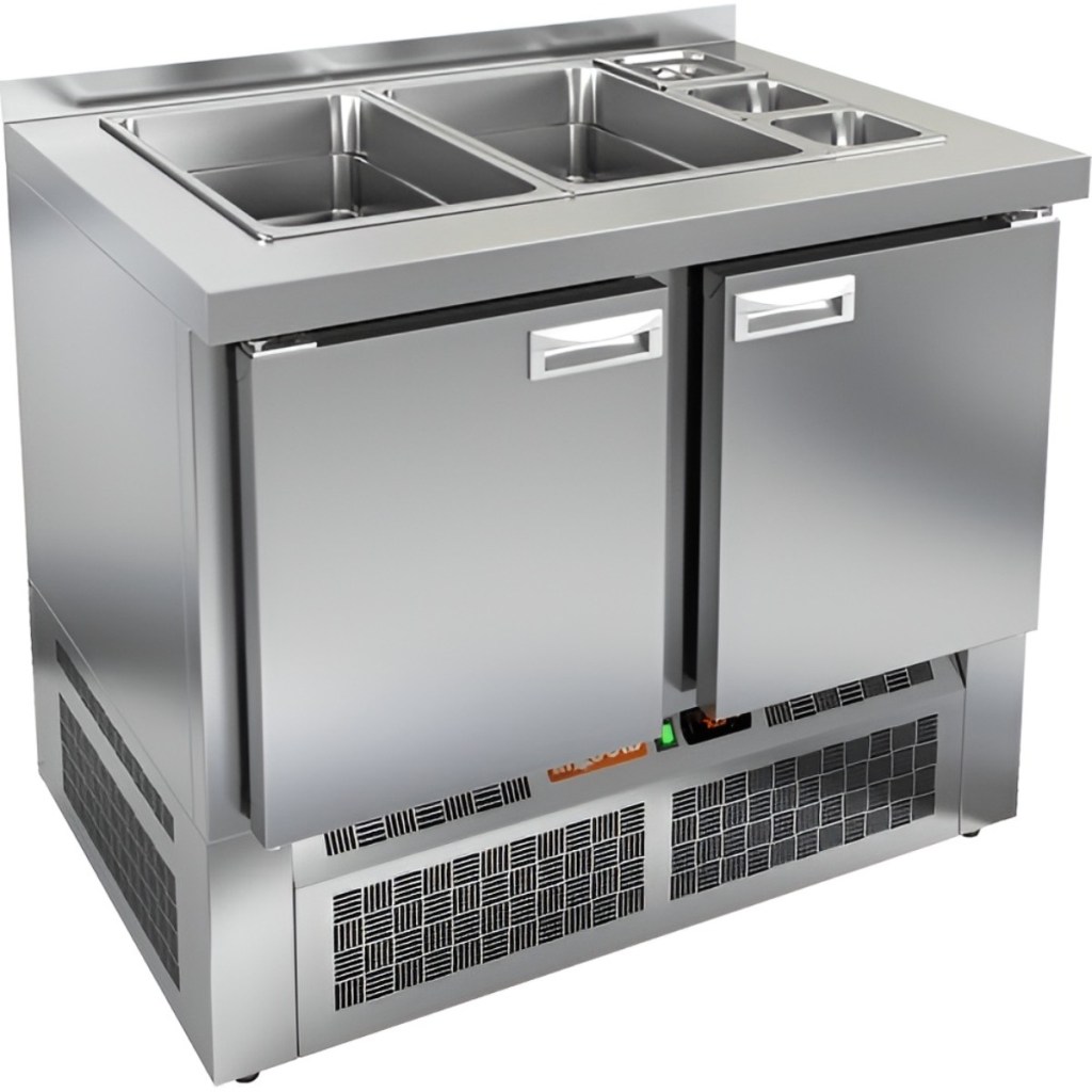 Каталог оборудования Холодильное оборудованиеСтолы охлаждаемыеСтолы холодильные для салатовСтол холодильный для салатов HiCold SLE3-11GN без крышки Стол холодильный для салатов HiCold SLE3-11GN без крышки Код товара: 064-935 Поделиться: WhatsAppTelegram СравнитьДобавить в КПВ избранное 0 118 162 ₽ В корзину 0 шт Под заказСамовывоз сегодня бесплатно Взять в кредит Купить в лизинг Получить консультацию в WhatsApp Описание Характеристики Отзывы 0 Инструкции 2 Стол холодильный для салатов HiCold SLE3-11GN без крышки предназначен для охлаждения и кратковременного хранения продуктов, используемых при приготовлении салатов, закусок, сэндвичей и других блюд. Он идеально подходит для предприятий общественного питания и торговли, где требуется удобный доступ к охлаждённым ингредиентам. Модель сочетает в себе рабочую поверхность и охлаждаемый объём, что обеспечивает эффективную организацию кухонного пространства. Корпус и столешница изготовлены из нержавеющей стали, что гарантирует долговечность конструкции, устойчивость к коррозии и соответствие санитарным нормам. Особенности модели: Электронная панель управления — обеспечивает точный контроль температуры Две полки формата GN 1/1 — для удобного размещения ингредиентов Салат-бар вмещает 2 GN 1/1 и 3 GN 1/6 — для организации набора продуктов Автоматические доводчики дверей с фиксацией открытого положения Магнитные уплотнители — легко заменяются при износе Открытая агрегатная часть — упрощает обслуживание оборудования Регулируемые ножки — для устойчивой установки на любой поверхности Глубина гастроемкостей — до 100 мм Толщина столешницы — 50 мм Толщина теплоизоляции — 50 мм HiCold SLE3-11GN без крышки — функциональное решение для профессиональной кухни, позволяющее хранить ингредиенты в охлаждённом состоянии и всегда иметь их под рукой во время приготовления блюд. Изображение товара, представленного на фото, может отличаться от его фактического вида. Показать все Габаритные размеры1000×700×1315 ммДиапазон рабочей температурыот +2 до +10 °CРасположение агрегатаНижнее Материал столешницыНержавеющая Тип столаС дверьми Тип двериГлухая Объём245 лКоличество дверей2 штТип гастроемкостейGN 1/1, GN 1/6 Размер полки530×325 ммНапряжение220 ВМощность0,15 кВтТип охлажденияДинамическое Тип оттайкиАвтоматическая СтолешницаС бортом Вес нетто95 кгВес брутто140 кгБрендHicold Оставить отзыв Еще никто не оставил отзыв на этот товар Паспорт на HICOLD SLE3-11GN.pdfДекларация о соответствии.pdf Ранее просмотрено Под заказ 143 632 ₽ Стол холодильный для салатов HiCold SLE2-111SN (1/6) без крышки