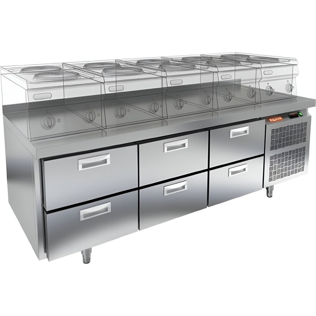 Каталог оборудования Холодильное оборудованиеСтолы охлаждаемыеСтолы холодильные под тепловое оборудованиеСтол охлаждаемый HiCold GN 222/TN LT под тепловое оборудование Стол охлаждаемый HiCold GN 222/TN LT под тепловое оборудование Код товара: 065-444 Поделиться: WhatsAppTelegram СравнитьДобавить в КПВ избранное 0 224 092 ₽ В корзину 0 шт Под заказСамовывоз сегодня бесплатно Взять в кредит Купить в лизинг Получить консультацию в WhatsApp Описание Характеристики Отзывы 0 Инструкции 2 Стол охлаждаемый HiCold GN 222/TN LT под тепловое оборудование предназначен для обработки продуктов и временного хранения скоропортящихся ингредиентов и напитков на предприятиях общественного питания и торговли. Устройство совмещает функции холодильной камеры и рабочей поверхности, что делает его особенно удобным для профессиональных кухонь. Столешница рассчитана на установку теплового оборудования: под рабочей поверхностью встроен ДСП-лист, который укрепляет конструкцию и препятствует проникновению тепла внутрь. Такое решение обеспечивает дополнительную жесткость, позволяет рационально использовать рабочее пространство и повышает эффективность работы на кухне. Особенности: 6 выдвижных ящиков обеспечивают удобный доступ к продуктам и рациональную организацию пространства Автоматические доводчики дверей с фиксатором открытого положения улучшают эргономику работы и помогают сохранить холод внутри камеры. Легкозаменяемые магнитные уплотнители способствуют герметичности и простоте технического обслуживания. Регулируемые по высоте ножки позволяют адаптировать установку под особенности помещения. Толщина столешницы — 50 мм обеспечивает надёжную опору при интенсивной эксплуатации. Высота борта — 50 мм препятствует скатыванию продуктов и инвентаря. Толщина теплоизоляции — 50 мм способствует энергоэффективности и поддержанию стабильной температуры. Температурный диапазон окружающей среды — от 12 до 37 °C, что делает оборудование универсальным в разных климатических условиях. HiCold GN 222/TN LT сочетает функциональность, надёжность и простоту в обслуживании. Идеально подходит для кухонь ресторанов, кафе и других заведений общепита, где важно одновременно эффективно хранить продукты и иметь под рукой рабочее пространство.Изображение товара, представленного на фото, может отличаться от его фактического вида. Показать все Габаритные размеры1835×700×675 ммДиапазон рабочей температурыот -2 до +10 °CМатериал столешницыНержавеющая Расположение агрегатаБоковое Объём375 лТип столаС ящиками Количество ящиков6 штНапряжение220 ВМощность0,46 кВтТип охлажденияДинамический Тип оттайкиАвтоматическая СтолешницаС бортом Габариты в упаковке2000×850×850 ммВес нетто125 кгВес брутто170 кгБрендHicold Оставить отзыв Еще никто не оставил отзыв на этот товар Паспорт на HICOLD GN 222/TN LT.pdfДекларация о соответствии.pdf Похожие товары Перейти в каталог Под заказ 137 619 ₽ Стол холодильный среднетемпературный Polair TD3GN-G Под заказ 108 164 ₽ Стол холодильный среднетемпературный HURAKAN HKN-GN3TN С этим товаром покупают Под заказ 389 300 ₽ Шкаф холодильный для вызревания мяса Polair CS107 Meat (Тип 1) Ранее просмотрено Под заказ 381 952 ₽ Компрессорно-конденсаторный блок Север BGSF 535 S Под заказ 220 402 ₽ Стол охлаждаемый HiCold GN 1122/TN LT SH под тепловое оборудование Под заказ 461 020 ₽ Компрессорно-конденсаторный блок Север ACM-ZBD45 Под заказ 169 012 ₽ Стол морози