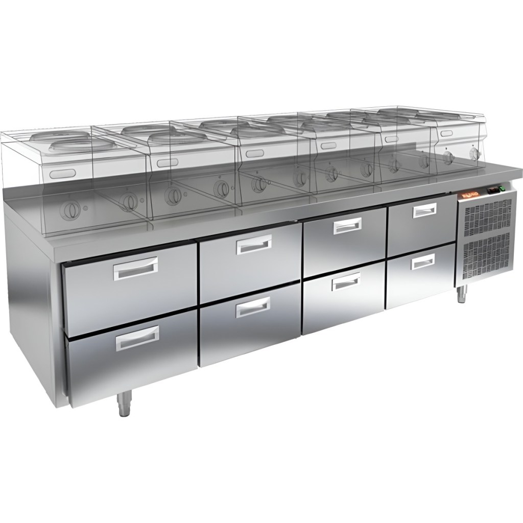 Каталог оборудования Холодильное оборудованиеСтолы охлаждаемыеСтолы холодильные под тепловое оборудованиеСтол охлаждаемый HiCold GN 2222/TN LT под тепловое оборудование Стол охлаждаемый HiCold GN 2222/TN LT под тепловое оборудование Код товара: 065-431 Поделиться: WhatsAppTelegram СравнитьДобавить в КПВ избранное 0 283 402 ₽ В корзину 0 шт Под заказСамовывоз сегодня бесплатно Взять в кредит Купить в лизинг Получить консультацию в WhatsApp Описание Характеристики Отзывы 0 Инструкции 2 Стол охлаждаемый HiCold GN 2222/TN LT под тепловое оборудование — это профессиональное оборудование, предназначенное для кратковременного хранения скоропортящихся продуктов и напитков, а также удобной подготовки ингредиентов на предприятиях общественного питания и торговли. Модель сочетает функциональность, надежность и эргономичный дизайн. Столешница рассчитана на установку теплового оборудования: под рабочей поверхностью встроен ДСП-лист, который укрепляет конструкцию и препятствует проникновению тепла внутрь. Такое решение обеспечивает дополнительную жесткость, позволяет рационально использовать рабочее пространство и повышает эффективность работы на кухне. Ключевые особенности: 8 выдвижных ящиков обеспечивают удобный доступ к продуктам и рациональную организацию пространства. Электронная панель управления — простое и точное регулирование температуры. Автоматические доводчики дверей с фиксатором в открытом положении — для комфорта при загрузке и выгрузке. Легкозаменяемые магнитные уплотнители обеспечивают надежную герметичность. Регулируемые по высоте ножки позволяют адаптировать стол к любому рабочему пространству. Корпус и столешница из нержавеющей стали — долговечность, устойчивость к коррозии и простота в уходе. Толщина теплоизоляции, столешницы и борта — 50 мм — оптимальное сохранение температуры и жесткость конструкции. Рабочий температурный режим при температуре окружающей среды от 12 до 37 °C. HiCold GN 2222/TN LT — это многофункциональный холодильный стол, идеально подходящий для профессиональной кухни. Он сочетает в себе высокое качество материалов, продуманную конструкцию и удобство эксплуатации, что делает его надежным помощником в интенсивной повседневной работе.Изображение товара, представленного на фото, может отличаться от его фактического вида. Показать все Габаритные размеры2280×700×675 ммДиапазон рабочей температурыот -2 до +10 °CМатериал столешницыНержавеющая Расположение агрегатаБоковое Объём495 лТип столаС ящиками Напряжение220 ВМощность0,48 кВтТип охлажденияДинамический Тип оттайкиАвтоматическая СтолешницаС бортом Габариты в упаковке2440×850×850 ммВес нетто140 кгВес брутто180 кгБрендHicold Оставить отзыв Еще никто не оставил отзыв на этот товар Паспорт на HICOLD GN 2222TN LT.pdfДекларация о соответствии.pdf Похожие товары Перейти в каталог Под заказ 148 851 ₽ Стол холодильный среднетемпературный HiCold SN 1111/TN W В наличии 124 828 ₽ Стол холодильный среднетемпературный Polair TM4GN-GС С этим товаром покупают В наличии 178 679 ₽ Шкаф холодильный универсальный Polair CV 114-G В наличии 9 842 ₽ Индукционная плита HURAKAN HKN-ICW35ML WOK Ранее просмотрено Под заказ 169 012 ₽ Стол морозильный HiCold GN 111/BT LT под тепловое оборудование Под заказ 284 779 ₽ Компрессорно-конденсаторный блок Север BGS 415 S Под заказ 104 841 ₽ Стол морозильный HiCold GN 1/BT LT под тепловое оборудование Под заказ 152 856 ₽ Стол холодильный средне