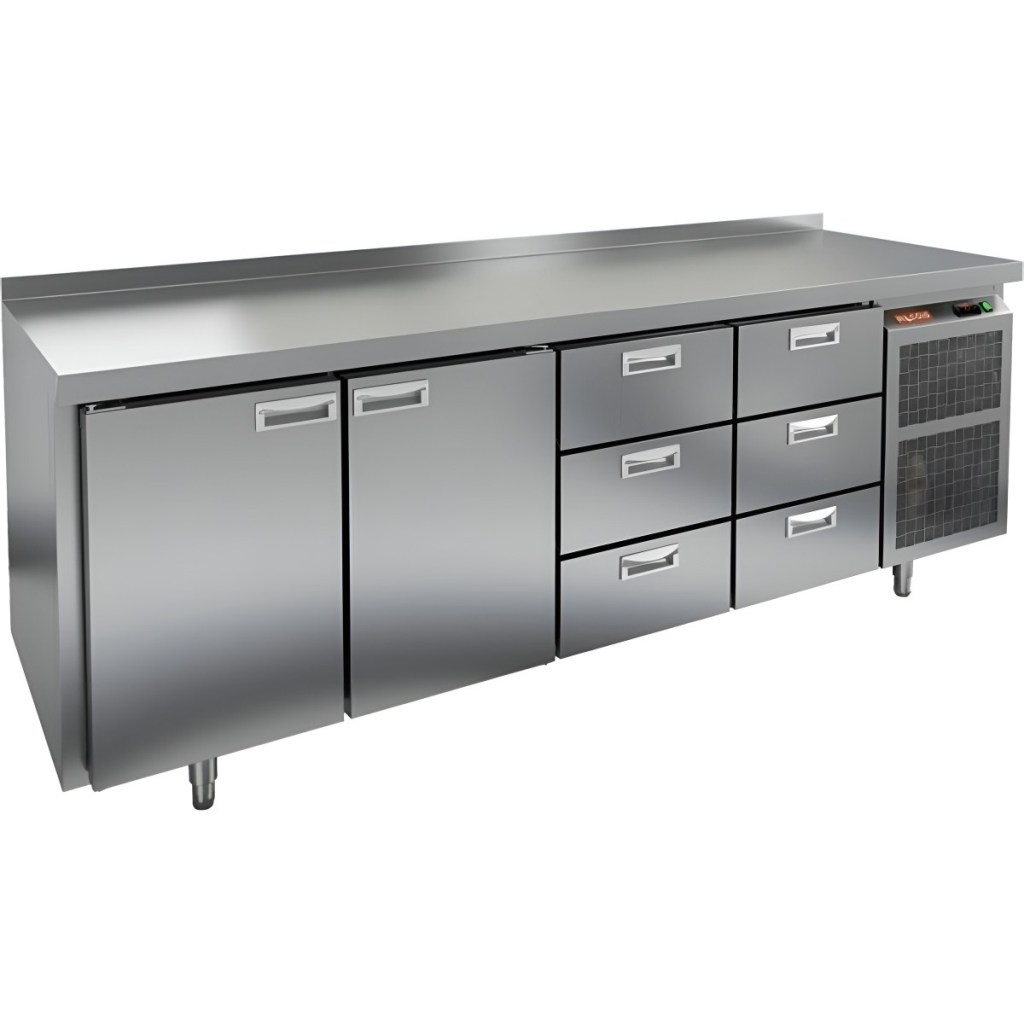 Каталог оборудования Холодильное оборудованиеСтолы охлаждаемыеСтолы холодильные среднетемпературныеСтол холодильный среднетемпературный HiCold GN 1133/TN Стол холодильный среднетемпературный HiCold GN 1133/TN Код товара: 001-334 Поделиться: WhatsAppTelegram СравнитьДобавить в КПВ избранное 0 259 191 ₽ В корзину 0 шт Под заказСамовывоз сегодня бесплатно Взять в кредит Купить в лизинг Получить консультацию в WhatsApp Описание Характеристики Отзывы 0 Инструкции 1 Стол холодильный среднетемпературный HiCold GN 1133/TN предназначен для обработки ингредиентов и кратковременного хранения скоропортящихся продуктов и напитков на предприятиях общественного питания и торговли. Модель оснащена удобной электронной панелью управления. Корпус и столешница выполнены из прочной и гигиеничной нержавеющей стали. В комплект входят 2 полки для размещения продуктов. Особенности: 2 распашные двери обеспечивают быстрый и удобный доступ к охлаждаемому отделению. 6 выдвижных секций позволяют рационально организовать внутреннее пространство и ускорить доступ к ингредиентам. Автоматические доводчики дверей с фиксатором открытого положения повышают комфорт при эксплуатации. Легкозаменяемые магнитные уплотнители обеспечивают надёжную герметичность и упрощают техническое обслуживание. Регулируемые по высоте ножки дают возможность выровнять стол на неровной поверхности. Толщина столешницы — 50 мм, что делает её устойчивой к механическим нагрузкам. Высота борта — 50 мм предотвращает скатывание продуктов и жидкостей с поверхности. Толщина теплоизоляции — 50 мм, что способствует поддержанию стабильной температуры и снижению энергозатрат. Диапазон температуры окружающего воздуха — от 12 до 37 °C, что делает модель универсальной для различных условий эксплуатации. HiCold GN 1133/TN — это практичный и надёжный холодильный стол, сочетающий удобство работы, продуманную организацию внутреннего пространства и высокую энергоэффективность. Идеально подходит для профессиональных кухонь.Изображение товара, представленного на фото, может отличаться от его фактического вида. Показать все Габаритные размеры2280×700×850 ммДиапазон рабочей температурыот -2 до +10 °CРасположение агрегатаБоковое Материал столешницыНержавеющая Тип столаС дверьми и ящиками Тип двериГлухая Объём660 лКоличество дверей2 штКоличество полок2 штКоличество ящиков6 штРазмер полки530×325 ммНапряжение220 ВМощность0,48 кВтТип охлажденияДинамический Тип оттайкиАвтоматическая СтолешницаС бортом Вес нетто212 кгВес брутто236 кгБрендHicoldВсе холодильные столы HicoldВсе нержавеющие холодильные столы Все холодильные столы с бортом Оставить отзыв Еще никто не оставил отзыв на этот товар Паспорт на HICOLD GN 1133/TN.pdf Похожие товары Перейти в каталог В наличии 139 401 ₽ Стол холодильный среднетемпературный HiCold GN 1111 BR2 TN В наличии 113 121 ₽ Стол холодильный среднетемпературный HiCold GN 1111/TN W Под заказ 148 851 ₽ Стол холодильный среднетемпературный HiCold SN 1111/TN W В наличии 139 583 ₽ Стол холодильный среднетемпературный Cooleq GN4200TN с бортом С этим товаром покупают Под заказ 207 231 ₽ Шкаф морозильный Abat ШХн-1,4 Ранее просмотрено Под заказ 110 320 ₽ Моноблок холодильный низкотемпературный АСК-холод МН-21 ЭКО