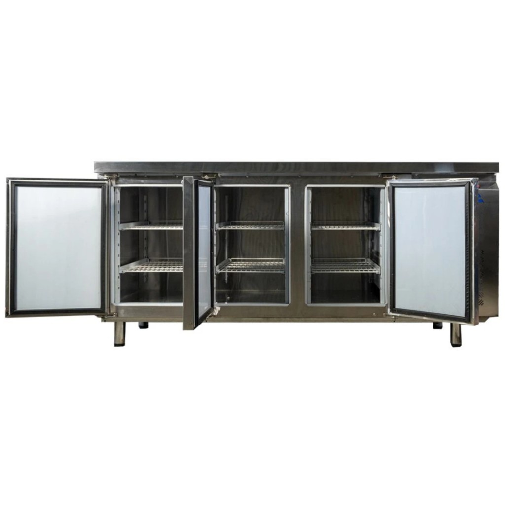 Каталог оборудования Холодильное оборудованиеСтолы охлаждаемыеСтолы холодильные среднетемпературныеСтол холодильный среднетемпературный Ангара СХБ 1,835-700 Стол холодильный среднетемпературный Ангара СХБ 1,835-700 Код товара: 066-353 Поделиться: WhatsAppTelegram СравнитьДобавить в КПВ избранное 0 140 538 ₽ В корзину 0 шт Под заказСамовывоз сегодня бесплатно Взять в кредит Купить в лизинг Получить консультацию в WhatsApp Описание Характеристики Отзывы 0 Стол холодильный среднетемпературный Ангара СХБ 1,835-700 предназначен для обработки ингредиентов и кратковременного хранения скоропортящихся продуктов и напитков на предприятиях общественного питания и торговли. Модель сочетает компактные размеры, функциональность и надёжность, обеспечивая удобство работы на кухне. Особенности модели: Электронное управление — интуитивно понятная панель позволяет точно регулировать температурный режим и контролировать работу устройства. Корпус и столешница из нержавеющей стали — обеспечивают долговечность, устойчивость к коррозии и лёгкость в уходе. Три дверцы и три полки размером 530×325 мм — обеспечивают удобный доступ к продуктам и рациональное использование внутреннего пространства. Регулируемые ножки — позволяют адаптировать высоту стола под индивидуальные условия рабочей зоны. Автоматические доводчики дверей с фиксацией — двери закрываются плавно и остаются зафиксированными в открытом положении при необходимости. Съёмные магнитные уплотнители — упрощают чистку и замену, поддерживая герметичность и эффективность охлаждения. Диапазон температур: -2…+10 °C / +2…+10 °C, что позволяет использовать стол как для охлаждённых, так и для быстро портящихся продуктов. Холодильный стол Ангара СХБ 1,835-700 — это практичное и надёжное решение для профессиональных кухонь и торговых точек. Совмещение эргономичной конструкции, долговечных материалов и точного электронного контроля температуры обеспечивает удобство эксплуатации и эффективное хранение продуктов в оптимальных условиях.Изображение товара, представленного на фото, может отличаться от его фактического вида. Показать все Габаритные размеры1835×700×850 ммДиапазон рабочей температурыот -2 до +10 °CРасположение агрегатаБоковое Материал столешницыНержавеющая Тип столаС дверьми Тип двериГлухая Объём505 лКоличество дверей3 штКоличество полок3 штРазмер полки530×325 ммНапряжение220 ВМощность0,46 кВтТип охлажденияДинамическое Тип оттайкиАвтоматическая СтолешницаС бортом БрендАнгараВсе нержавеющие холодильные столы Все холодильные столы с бортом Оставить отзыв Еще никто не оставил отзыв на этот товар Ранее просмотрено Под заказ Цена по запросу Холодильная витрина МХМ Валенсия ВХСло-1,875 В наличии 111 300 ₽ Камера холодильная АСК-холод КХ-3,31 (1360х1360х2460)