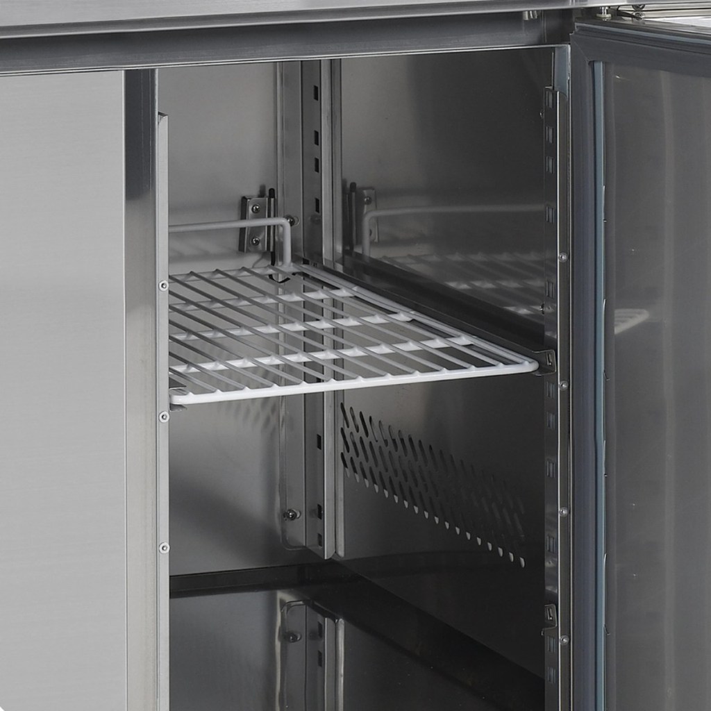 Каталог оборудования Холодильное оборудованиеСтолы охлаждаемыеСтолы морозильные низкотемпературныеСтол морозильный TEFCOLD CF7310 Стол морозильный TEFCOLD CF7310 Код товара: 010-257 Поделиться: WhatsAppTelegram СравнитьДобавить в КПВ избранное 0 218 857 ₽ В корзину 0 шт В наличииСамовывоз сегодня бесплатно Взять в кредит Купить в лизинг Получить консультацию в WhatsApp Описание Характеристики Отзывы 0 Стол морозильный TEFCOLD CF7310 — профессиональное оборудование для раскатки теста, обработки, заморозки и долговременного хранения продуктов, полуфабрикатов, напитков и мороженого на предприятиях общественного питания и торговли. Корпус и внутренняя отделка выполнены из нержавеющей стали AISI 304, что обеспечивает долговечность, гигиеничность и лёгкость ухода. Особенности модели: Динамическое охлаждение — равномерное распределение холода по всему объёму Автоматическое размораживание — поддержание стабильной работы без образования наледи Электронный термостат и градусник — точное управление температурой Хладагент R404a, подзарядка — 0,09 кг Съёмная столешница с бортом — удобство работы и уборки Самозакрывающиеся двери 3 полки GN1/1 (530 × 325 мм) — эффективная организация внутреннего пространства Регулируемые по высоте ножки — устойчивость на любой поверхности Климатический класс 4 — работа при температуре до +30 °C Полезный объём: 402 л Мощность: 0,7 кВт Энергопотребление: 10,15 кВт/сутки Внутренние размеры: 1337 × 530 × 589 мм Уровень шума: 42 дБ TEFCOLD CF7310 — надёжный и функциональный морозильный стол для профессиональных кухонь. Он сочетает рабочую поверхность для раскатки теста с вместительной морозильной камерой, обеспечивая удобство работы, долговременное хранение продуктов и стабильный температурный режим.Изображение товара, представленного на фото, может отличаться от его фактического вида. Показать все Габаритные размеры1795×700×980 ммДиапазон рабочей температурыот -20 до -10 °CРасположение агрегатаБоковое Материал столешницыНержавеющая Тип столаС дверьми Тип двериГлухая Общий объем417 лПолезный объем402 лКоличество дверей3 штРазмер полки530×325 ммНапряжение230 ВРасход электроэнергии в сутки6,95 кВт/сутТип охлажденияДинамический Тип оттайкиАвтоматическая Климатический класс4 ХладагентR404a СтолешницаС бортом Уровень шума42 дБГабариты в упаковке1830×750×1010 ммВес нетто152 кгВес брутто162 кгБрендTefcold Оставить отзыв Еще никто не оставил отзыв на этот товар Похожие товары Перейти в каталог Под заказ 125 817 ₽ Стол морозильный HURAKAN HKN-GN3BT Под заказ 166 404 ₽ Стол морозильный Abat СХН-70-02 без борта (дверь, дверь, дверь) С этим товаром покупают В наличии 201 690 ₽ Шкаф морозильный Полюс Carboma F1400 Ранее просмотрено Под заказ 43 369 ₽ Ларь морозильный с прямым стеклом CRYSPI ЛВН 300 П (СF 300FQ) красный 4 корзины Под заказ 49 394 ₽ Ларь морозильный с прямым стеклом CRYSPI ЛВН 500 П (СF 500FQ) красный без корзин