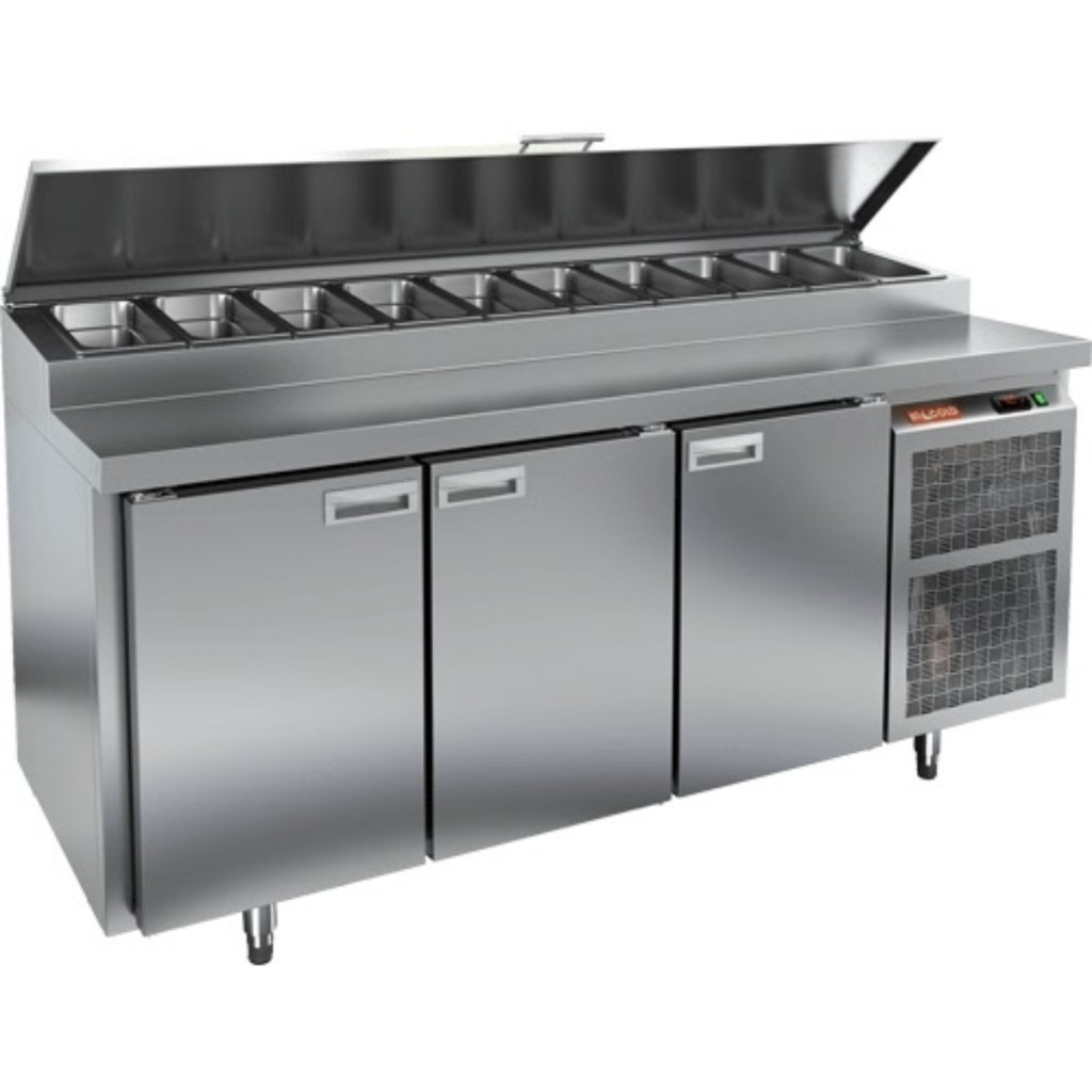 Каталог оборудования Холодильное оборудованиеСтолы охлаждаемыеСтолы холодильные для пиццыСтол холодильный для пиццы HiCold PZ1-111GN (1/3) М Стол холодильный для пиццы HiCold PZ1-111GN (1/3) М Код товара: 064-689 Поделиться: WhatsAppTelegram СравнитьДобавить в КПВ избранное 0 236 872 ₽ В корзину 0 шт Под заказСамовывоз сегодня бесплатно Взять в кредит Купить в лизинг Получить консультацию в WhatsApp Описание Характеристики Отзывы 0 Инструкции 2 Стол холодильный для пиццы HiCold PZ1-111GN (1/3) М — это профессиональное оборудование для предприятий общественного питания и торговли. Он совмещает просторную рабочую поверхность для раскатки теста и подготовки ингредиентов с охлаждаемым объёмом для хранения продуктов и напитков. Такое решение экономит место на кухне и ускоряет работу повара, поскольку все необходимые компоненты всегда под рукой. Корпус и столешница выполнены из нержавеющей стали, что гарантирует долговечность и лёгкость в уходе. Основные особенности: Динамическая система охлаждения — обеспечивает равномерное распределение холода Автоматическая оттайка — поддерживает стабильную работу без образования наледи Электронная панель управления — точная регулировка температуры и контроль режимов 3 вместительные полки формата GN 1/1 (размер 530×325 мм) Автоматические доводчики дверей с фиксатором открытого положения — удобство при загрузке и выгрузке Легкозаменяемые магнитные уплотнители — поддержание герметичности и экономия времени на обслуживании Открытая агрегатная часть — упрощённый доступ к техническим элементам Модификация М: колёса вместо опорных ножек (2 со стопором, 2 без стопора) — для лёгкого перемещения стола Максимальная глубина гастроёмкостей: 100 мм Глубина рабочей поверхности: 324 мм Толщина столешницы и теплоизоляции: 50 мм Вместимость салат-бара: до 10 гастроёмкостей Стол холодильный HiCold PZ1-111GN (1/3) М — это компактный и функциональный стол для пиццы с высокой производительностью и удобством эксплуатации. Он идеально подходит для интенсивной работы на профессиональной кухне, сочетая рабочую поверхность и холодильный блок в одном корпусе.Изображение товара, представленного на фото, может отличаться от его фактического вида. Показать все Габаритные размеры1835×700×1000 ммДиапазон рабочей температурыот +2 до +10 °CРасположение агрегатаБоковое Материал столешницыНержавеющая Тип столаС дверьми Тип двериГлухая Объём505 лТип гастроемкостейGN 1/3 Количество дверей3 штРазмер полки530×325 ммНапряжение220 ВМощность0,46 кВтТип охлажденияДинамическое Тип оттайкиАвтоматическая Габариты в упаковке2000×850×1080 ммВес нетто172 кгВес брутто200 кгБрендHicoldВсе холодильные столы для пиццы HicoldВсе нержавеющие холодильные столы для пиццы Оставить отзыв Еще никто не оставил отзыв на этот товар Паспорт на HICOLD PZ1-111GN.pdfДекларация о соответствии.pdf Ранее просмотрено В наличии 16 848 ₽ Шкаф холодильный HURAKAN HKN-BCL50