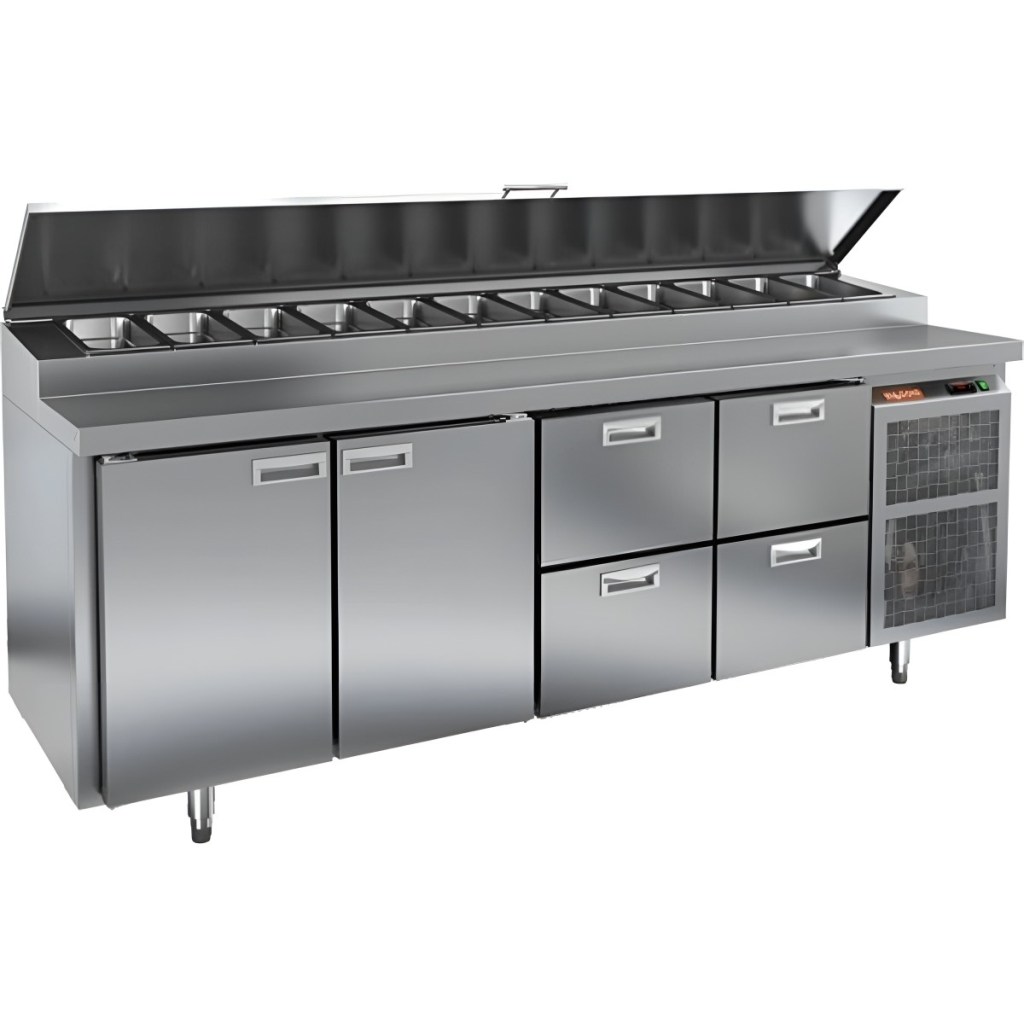 Каталог оборудования Холодильное оборудованиеСтолы охлаждаемыеСтолы холодильные для пиццыСтол холодильный для пиццы HiCold PZ1-1122/GN (1/3H) Стол холодильный для пиццы HiCold PZ1-1122/GN (1/3H) Код товара: 064-694 Поделиться: WhatsAppTelegram СравнитьДобавить в КПВ избранное 0 311 842 ₽ В корзину 0 шт Под заказСамовывоз сегодня бесплатно Взять в кредит Купить в лизинг Получить консультацию в Max Описание Характеристики Отзывы 0 Стол холодильный для пиццы HiCold PZ1-1122GN (1/3H) — профессиональное оборудование для ресторанов, кафе и предприятий торговли. Он совмещает рабочую поверхность для раскатки теста и подготовки ингредиентов с охлаждаемым блоком для кратковременного хранения продуктов и напитков. Корпус и столешница выполнены из нержавеющей стали, что гарантирует долговечность и лёгкость ухода. Основные особенности: Динамическая система охлаждения — равномерное распределение холода Автоматическая оттайка — поддержка стабильной работы без наледи Электронная панель управления — точная настройка температуры и режимов 2 вместительные полки формата GN 1/1 4 выдвижных ящика для хранения дополнительных ингредиентов Автоматические доводчики дверей с фиксатором открытого положения — удобство загрузки и выгрузки Легкозаменяемые магнитные уплотнители — поддержание герметичности Открытая агрегатная часть — облегчённый доступ к техническим элементам Регулируемые по высоте ножки — установка по уровню Максимальная глубина гастроёмкостей: 150 мм (крайняя правая — 100 мм) Глубина рабочей поверхности: 324 мм Толщина столешницы и теплоизоляции: 50 мм Вместимость салат-бара: до 12 гастроёмкостей Стол холодильный HiCold PZ1-1122GN (1/3H) — функциональный и удобный стол для пиццы и салатов, совмещающий рабочую поверхность, охлаждаемый блок, полки и ящики для хранения. Разная глубина гастроёмкостей и продуманная организация рабочего пространства делают его оптимальным решением для профессиональной кухни.Изображение товара, представленного на фото, может отличаться от его фактического вида. Показать все Габаритные размеры2280×700×1000 ммДиапазон рабочей температурыот +2 до +10 °CРасположение агрегатаБоковое Материал столешницыНержавеющая Тип столаС дверьми и ящиками Тип двериГлухая Объём660 лТип гастроемкостейGN 1/3 Количество дверей2 штКоличество ящиков4 штРазмер полки530×325 ммНапряжение220 ВМощность0,73 кВтТип охлажденияДинамическое Тип оттайкиАвтоматическая Габариты в упаковке2420×850×1080 ммВес нетто208 кгВес брутто228 кгБрендHicoldВсе холодильные столы для пиццы HicoldВсе нержавеющие холодильные столы для пиццы Оставить отзыв Еще никто не оставил отзыв на этот товар Ранее просмотрено В наличии 66 862 ₽ Шкаф холодильный HURAKAN HKN-RCS400