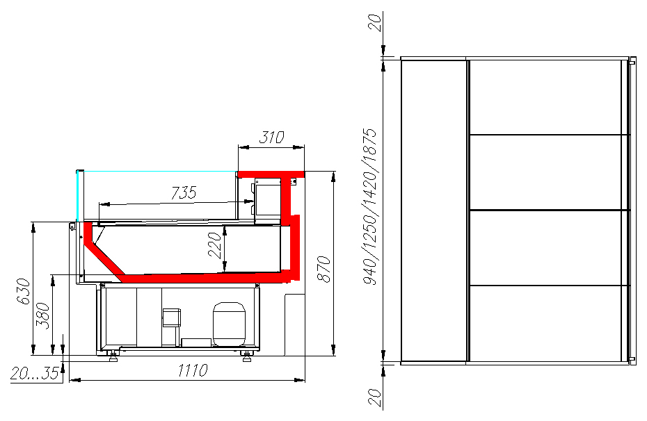 • Глубина зоны выкладки — 735 мм, удобная для размещения ассортимента.